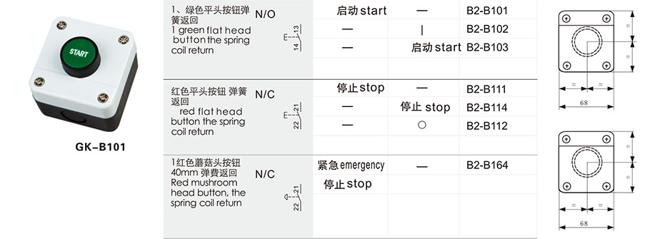 一般钮、高位钮、一般带灯钮、高位带灯钮