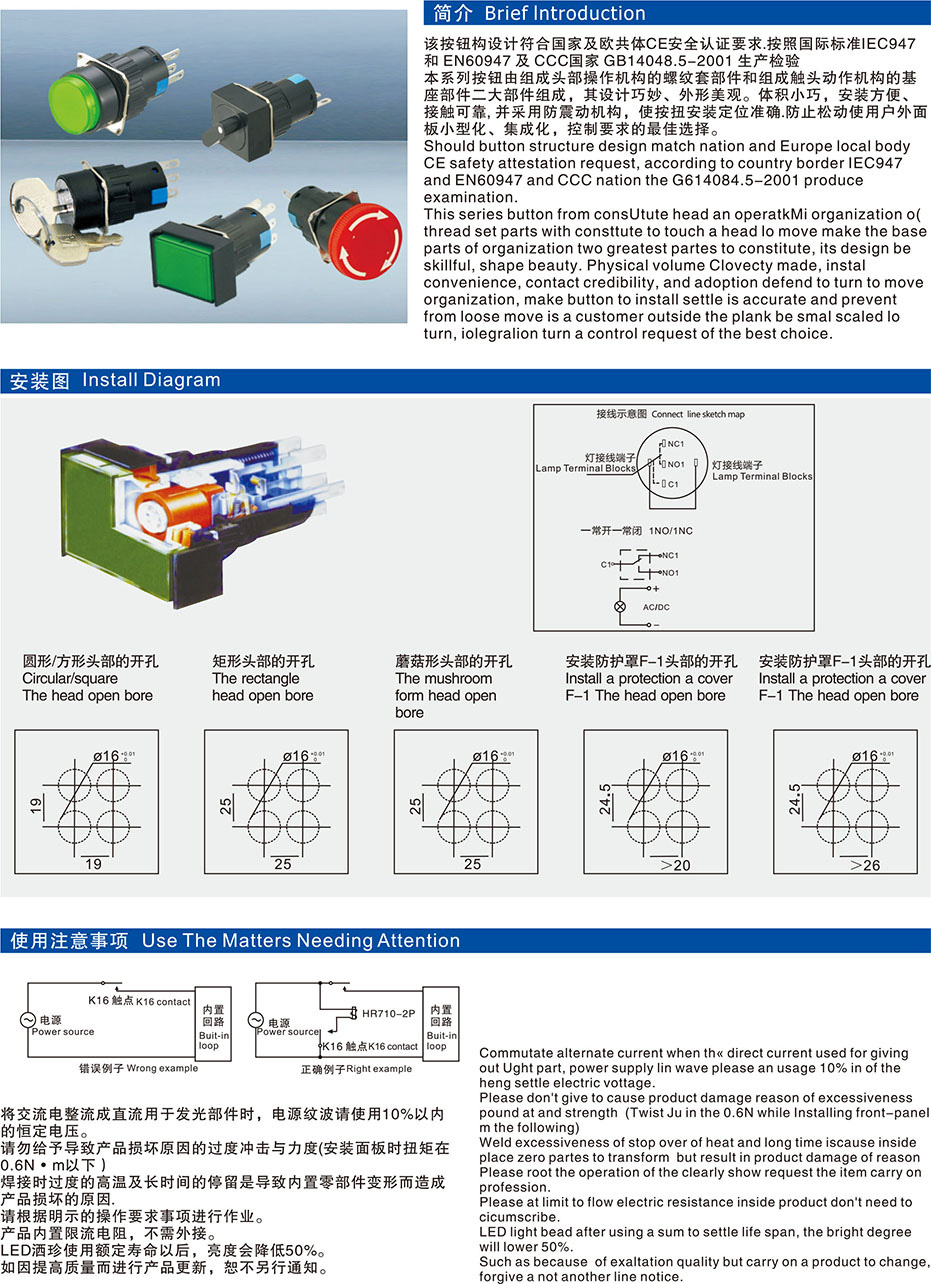 LA22-16按钮开关系列说明