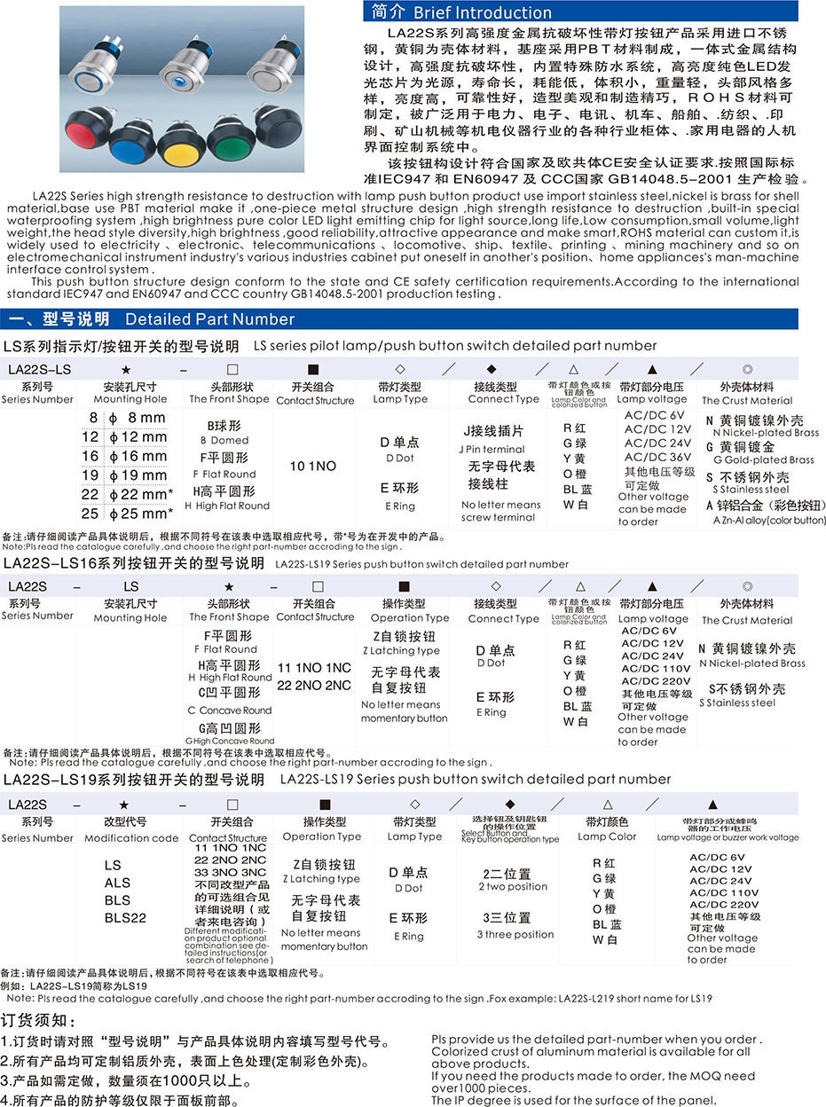 LA22S 金属按钮开关系列说明