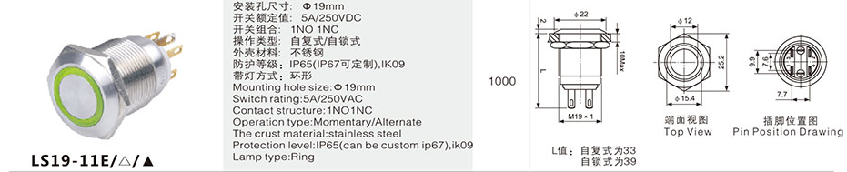 LA22S 金属按钮开关系列说明