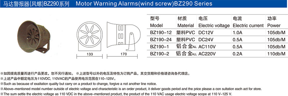 马达报警器(风螺)BZ190系列