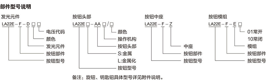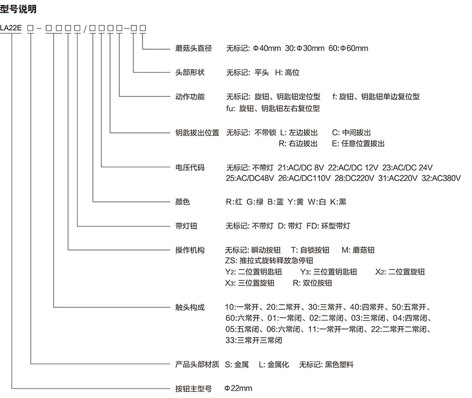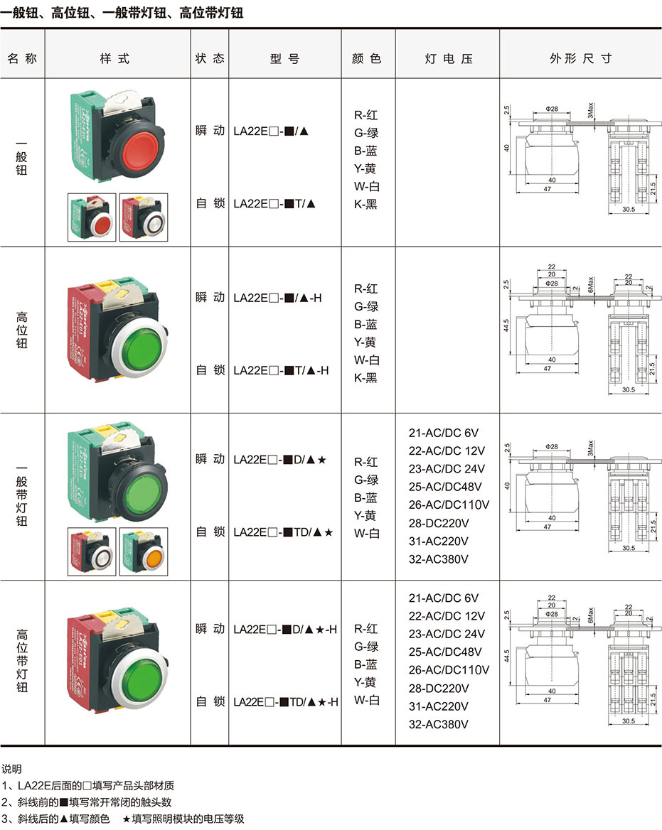 带灯按钮额定值: 电压代码 21 22 23 25 26 28 31 32